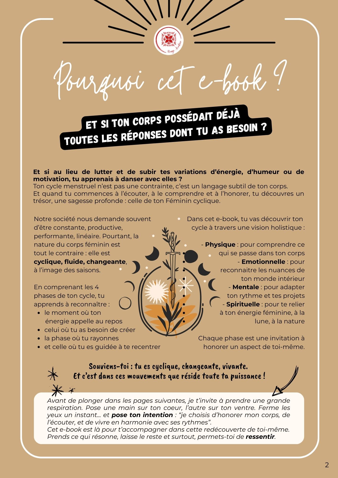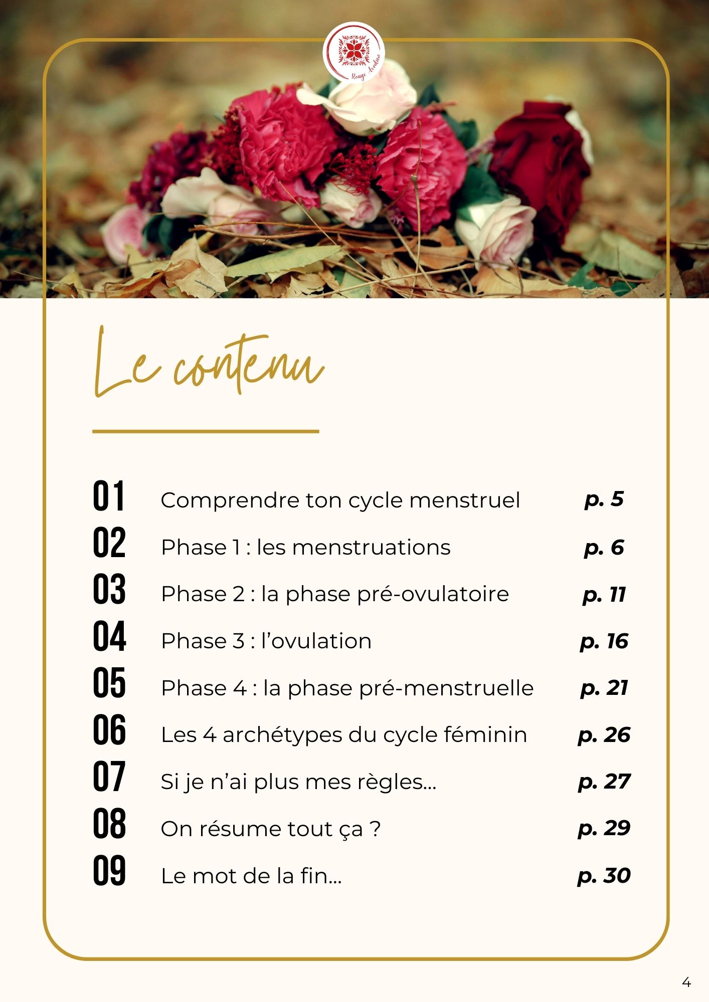 Dans cet e-book, tu découvriras ce qui se passe réellement dans ton corps à chacune des 4 phases de ton cycle.